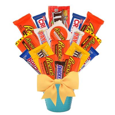 Our Going Nuts candy bouquet is loaded with a variety of candy and nut filled or flavored treats. Most certainly there are lots to share but the real question is… will they? You'd be "nuts" to pass up this outstanding candy gift for that special occasion such as office birthdays, promotions, job well done not to mention how perfect they are for the grand kids for any occasion!