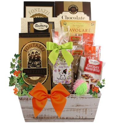 Send a gift they are sure to remember. Our Purr-fect Cat & Owner Gift is filled with delightful gourmet treats for the kitty’s owner and also treats and toys for kitty. Pet owners are always appreciative of those who send gifts but they are very excited when a gift arrives with treats for their beloved kitty as well. Sending one of our cat and owner gifts an excellent way to say Happy Birthday to Aunt Sophie, Get well to cousin Andrew and even an I miss you to friends, family and co-workers everywhere.